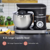 میکسر پایه دار ۱۵۰۰ واتی Geepas با کاسه مخلوط کن استیل ۸.۵ لیتری ایده آل برای نان و خمیر پالس ۶ سرعته دکمه ایجکت، قلاب بیتر