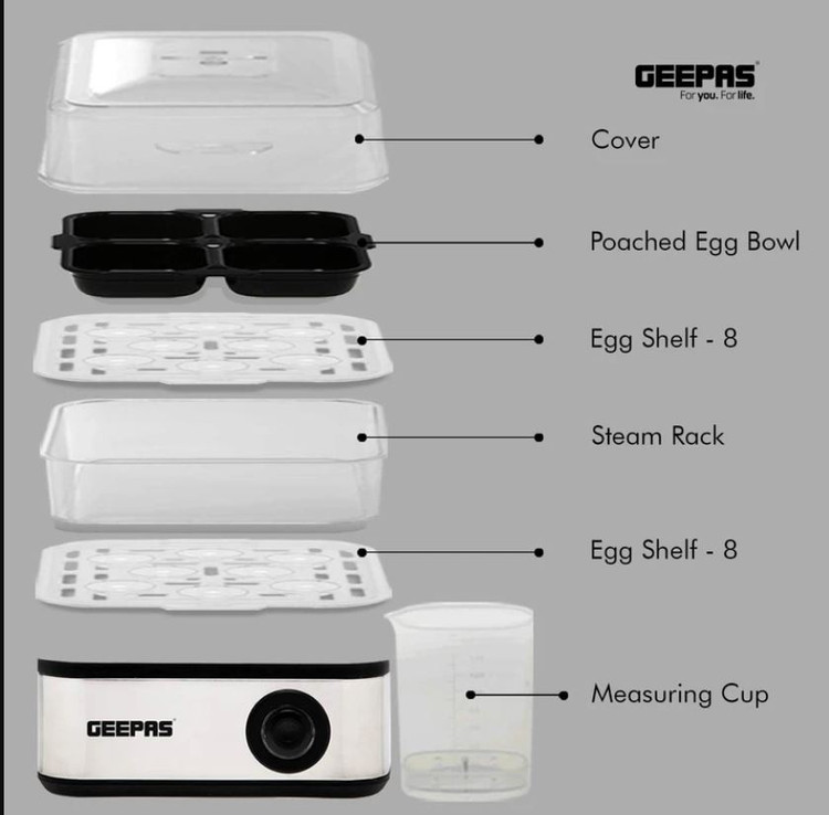 دیگ تخم مرغ Geepas تمام مواد مغذی تخم مرغ را حفظ می کند و آنها را با دقت بدون سوختن آماده می کند. گرما به طور موثر توزیع می شود و در عین حال تمام طعم و مزه حفظ می شود. این مشکل شما را برای مراقبت از تخم مرغ ها از بین می برد. این دیگ دارای دو سینی است که با رعایت فاصله ایمن روی هم قرار گرفته اند. ظرفیت هر سینی 8 عدد تخم مرغ می باشد. می توانید در مجموع 16 تخم مرغ بگذارید و آنها را در یک زمان پخته کنید. برای صبحانه های بزرگ خانواده عالی است. این دیگ تخم مرغ می تواند بیشتر از جوشاندن انجام دهد. آیا تخم مرغ های آب خوری خود را دوست دارید؟ شما هم می توانید از آن لذت ببرید! این دیگ به همراه سینی عرضه می شود. این سینی دارای چهار قسمت است و شما می توانید 4 عدد تخم مرغ را به صورت جداگانه به صورت جداگانه بپزید. برای دوستداران املت سینی را می توان با سینی املت تعویض کرد. تمام ساخته های تخم مرغ خود را در این اجاق تخم مرغ چند منظوره امتحان کنید. محافظت در برابر گرمای بیش از حد و خاموش شدن خودکار: آیا تا به حال پیش آمده است که تخم مرغ ها را برای جوشاندن قرار دهید و بعداً آنها را فراموش کرده اید و آنها را ترک خورده و ترد می بینید؟ خوب خسته نباشید، این دستگاه بعد از پخته شدن تخم مرغ ها به طور خودکار خاموش می شود. هنگامی که دمای دستگاه در حال افزایش است، به طور خودکار آن را خاموش می کند و دستگاه شما و تخم مرغ ها را حفظ می کند. نشانگر نور پاور: این دیگ دارای یک چراغ نشانگر است که به شما امکان می دهد از زمان کارکرد دستگاه خود مطلع شوید. طراحی صرفه جو در فضا: این دیگ تخم مرغ ظرفیت پخت بالا و طراحی فشرده ای دارد. این باعث صرفه جویی در فضا می شود و از آشفتگی پیشخوان آشپزخانه شما جلوگیری می کند.