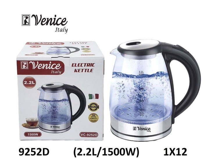 کتری برقی ونیز مدل 9252، یکی از محصولات کاربردی برند «ونیز» است. کتری ونیز مدل 9252 با بدنه شیشه ای که علاوه بر بهداشتی بودن قابلیت مشاهده سطح آب نیز بطور مشخص و واضح را دارد دارای توان مصرفی این 1500 می باشد. برای ایمنی بیشتر درب کتری با یک دکمه که بر روی آن تعبیه شده است باز میشود. این کتری برقی گنجایش 2.2 لیتری خود گزینه مناسبی برای افرادی است که طرفدار نوشیدنیهای مختلف گرم هستند ولی وقت کافی ندارند یا ترجیح میدهند یک نوشیدنی فوری تهیه و استفاده کنند و در کوتاهترین زمان آب جوش لازم برای تهیه قهوه فوری یا نسکافه، چای فوری یا کیسهای، و انواع دمنوش و چای سبز خود را داشته باشند.طول کابل این کتری برقی هم حدود 50 سانتیمتر است که طولی استاندارد به حساب میآید.